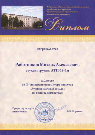 Поздравляем студента группы АТП-18м Работникова Михаила с присуждением диплома 2 степени в конкурсе “Лучший научный доклад” прошедший в ноябре 2018 г. с темой доклада “Идентификация каналов передачи управляемого технологического объекта”. Желаем дальнейших успехов в научной работе! Приказ Итоги Доклад 2018 2018-12-03